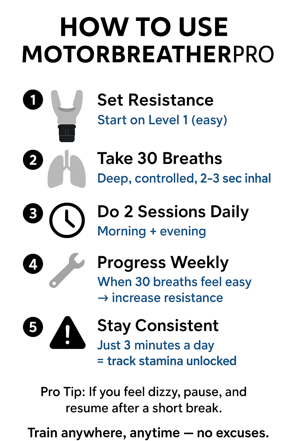 ✅ Clear instructions with visuals ✅ Safe and proven breathing routine ✅ Designed for motocross riders, backed by science ✅ Takes only a few minutes a day